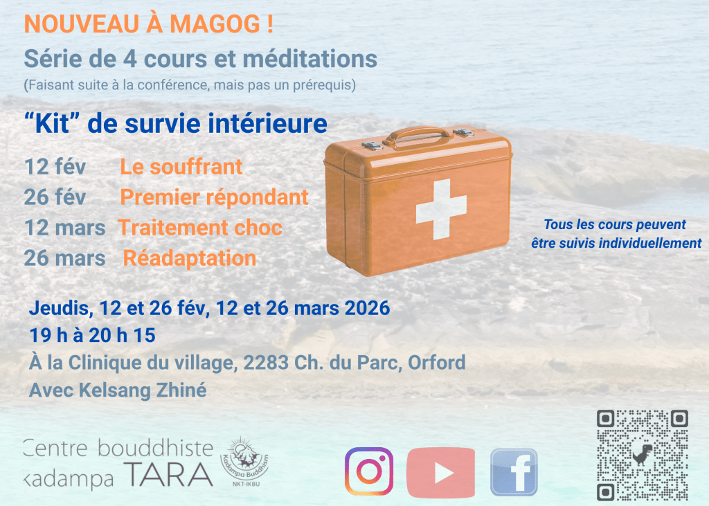 Suivant cette conférence publique, mais pas un prérequis, une série de cours et méditations se donnera à Magog, dès le 12 février.