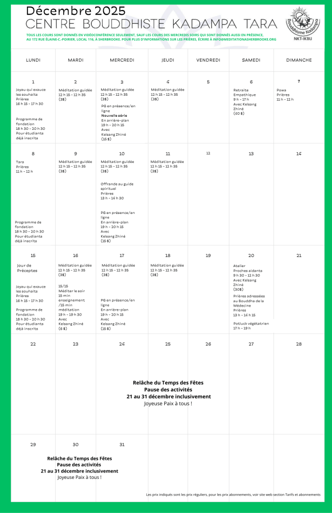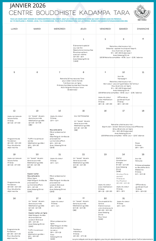 Puisque nous sommes toujours à la recherche d’un local permanent pour le centre Tara, tous les cours sont offerts en ligne, à l’exception du cours les mercredis soirs, qui sont disponibles aussi en présence au 172, rue Élaine-C.-Poirier, local 116, à Sherbrooke